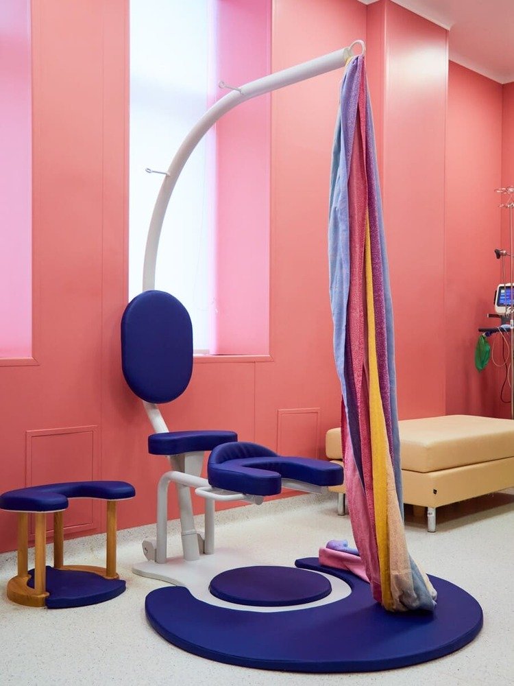 - Специализированные стойки «Деметра» установлены в двух родильных боксах для родов по контракту с услугой индивидуальной акушерки. Устройство обеспечивает максимальную поддержку для роженицы, позволяет принять физиологичную позу на корточках или полусидя и при этом сохраняет полный доступ для медицинского персонала.
