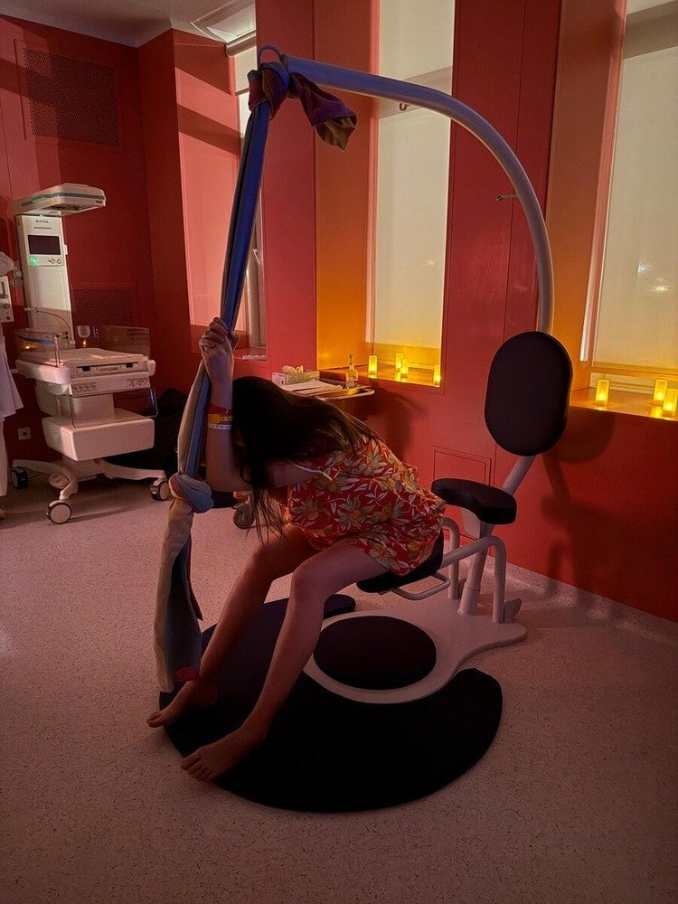 При вертикальных родах не используется эпидуральная анальгезия. В схватках можно двигаться для снижения болевых ощущений: прохаживаться по родовому боксу, принимать тёплый душ, опираться на фитбол — это то, что называется свободным поведением в родах. Потужной период проводят в устойчивой позиции — например, на кровати‑трансформере, акушерском стульчике или в опоре на специальную установку.Есть у вертикальных родов и свои недостатки. Свобода движений не обеспечивает обезболивания, сравнимого по эффекту с медикаментозным. Кроме того, пока вы перемещаетесь по родблоку, непрерывный КТГ‑контроль плода не проводится, и врачи оценивают его состояние периодически.